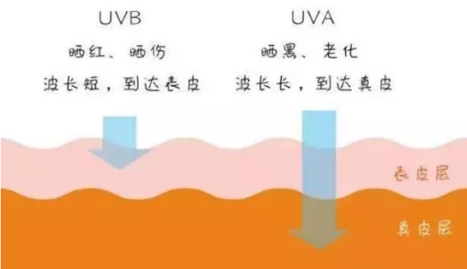 UVA:在任何地區(qū)全年都存在,它不僅可以穿透玻璃,而且80%UVA可穿透真皮上部。是導(dǎo)致真皮膠原纖維破壞,引起皮膚衰老、產(chǎn)生皺紋的主要原因。